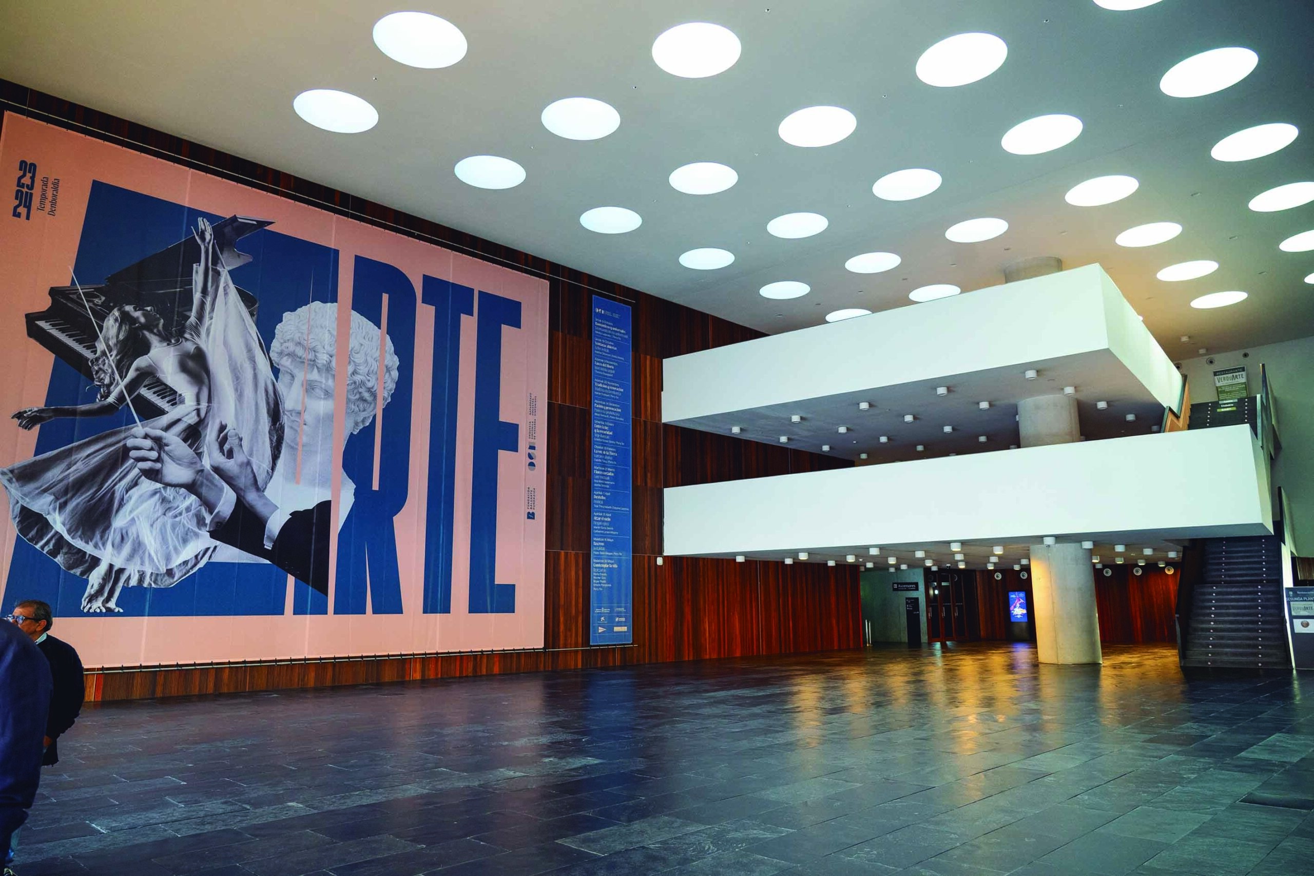 Situado en la planta baja, el vestíbulo principal de Baluarte es la zona de entrada y el espacio de acceso al resto del edificio. Delimitado por dos grandes paredes, que corresponden a la Sala Principal y a la Sala Plenaria, cuenta con una gran superficie de 800 m2.